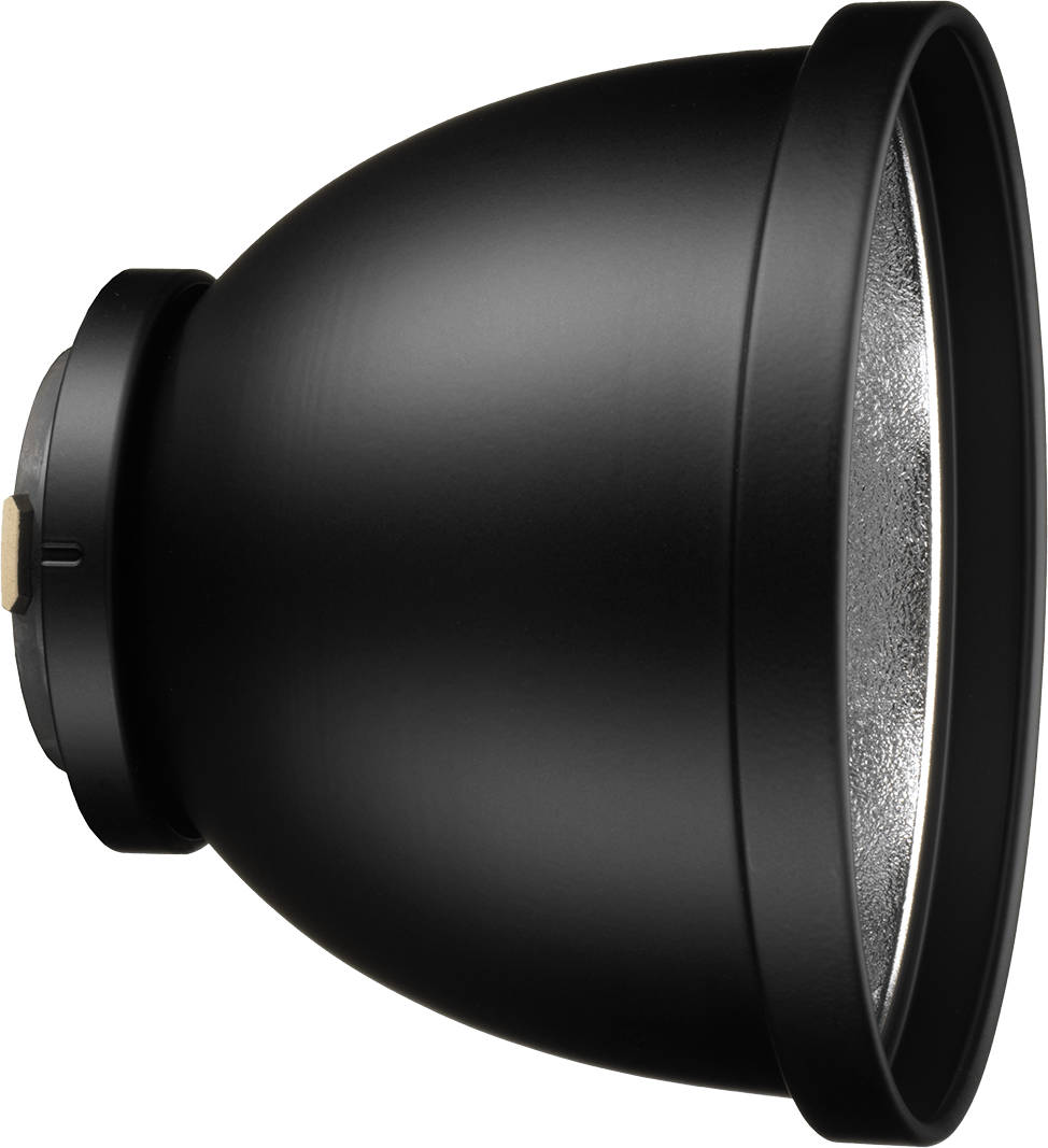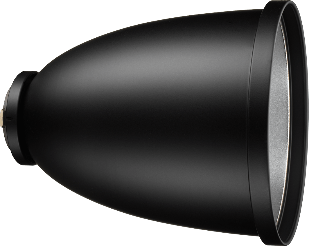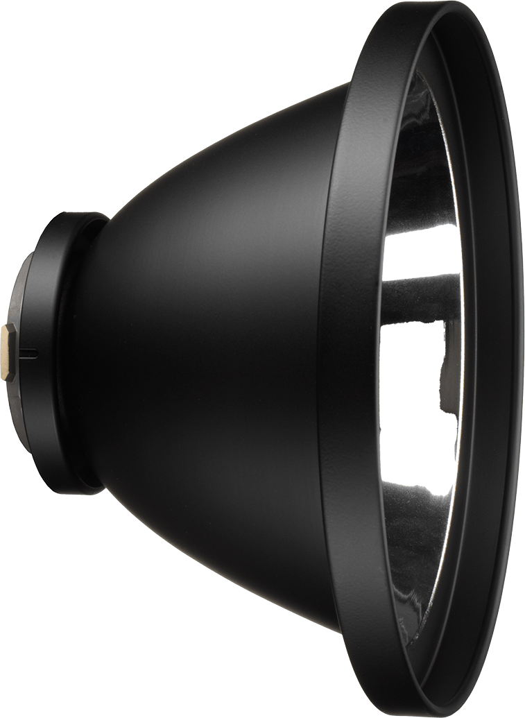 The slightly textured open reflectors are characterised by homogeneous light distribution, although a controlled centre emphasis can be achieved using focusable lamps. Get the most out of them using grids, barn doors, diffusers or colour filters.