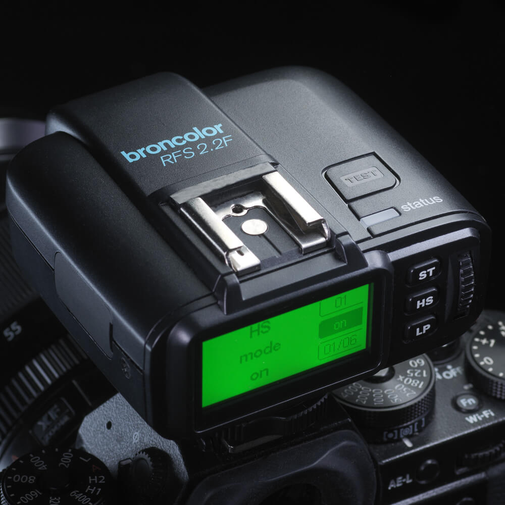 The RFS 2.2 transceiver operates as a remote or radio flash trigger for one or more broncolor power packs/monolights equipped with an RFS 2 interface. Power packs/monolights not equipped with an RFS 2 interface can be operated by connecting a RFS 2.2 as a receiver. Includes broncolor HS technology which allows exposure times up to 1/8000s on Siros L, Siros 800 S, and Move with the respective software update.