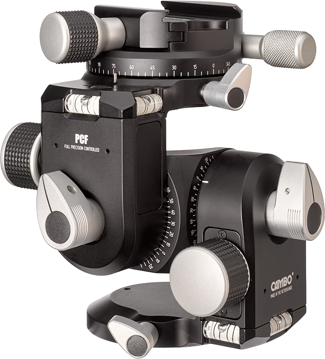 The PCH and PCF geared heads combine the speed of a ball head with the fine-tuning only fully geared heads can offer. That means, while having the flexibility of a ball head you still have complete control over the X, Y, and Z axis allowing for repeatability. The geared movements are self-locking and available in any position of the head. The bottom as well as the top rotate 360°. After levelling, the top rotation can be used for panoramic shooting. The PCF offers the addition of a geared camera platform which the PCH does not, a useful feature when adjustments in extremely fine increments are crucial to your composition.