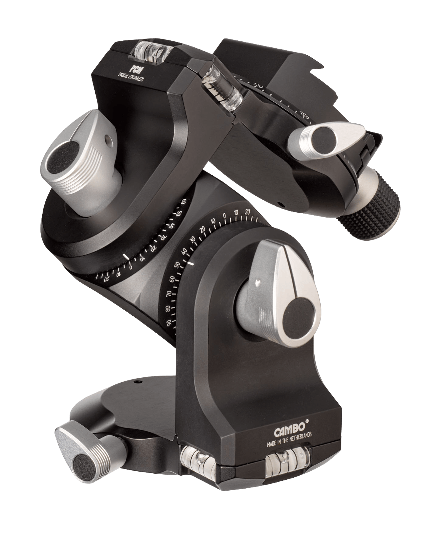 PCM is a manually controlled tripod head. Precisely position the camera with ease. The PCM makes it tilt, swing and rotate. All movements are controlled separately. Bottom and top plate both feature 360° rotation which makes it suitable for panorama shooting. The longer QR-XL is a useful accessory to enable rotation in the nodal point.