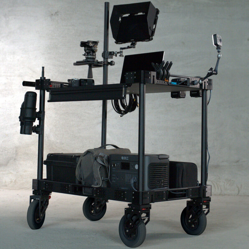 For larger shoots with bigger teams, carts offer a mobile yet robust and secure solution for your production. Easily transportable, they makes the transition from studio to location seamless and can be customised to meet your needs. They also serve as an ideal logistics trolley to get your kit to site.