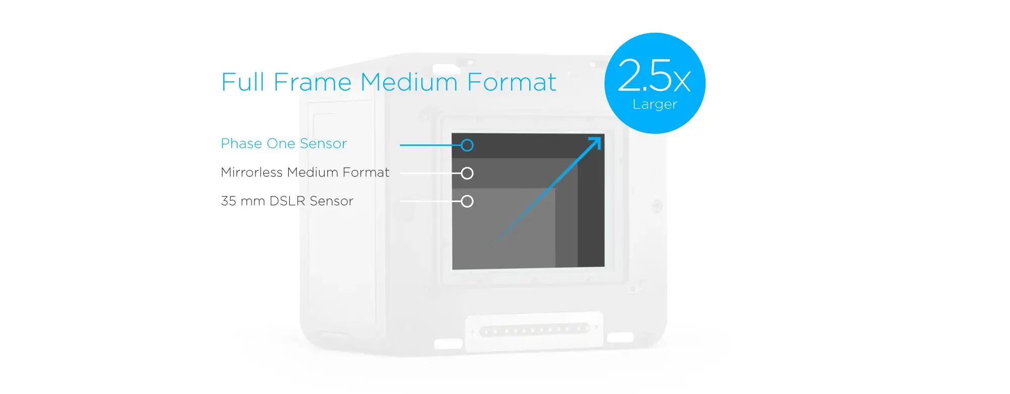 Full frame medium format. At the core of the IQ4 is the Infinity Platform, which lays a powerful foundation for image quality advancement, workflow transformation and feature evolution. The Infinity Platform is built to grow, expand and adapt. The full frame medium format sensors found in IQ4 Digital Backs, 1.5x the size of crop sensor mirrorless medium format and 2.5x that of full frame DSLR, allow you to capture more data, providing more detail and impressive results so that you can achieve your creative vision straight out of the camera. With the expanded output flexibility provided by the high resolution and up to 15 stops of dynamic range, your workflow options grow exponentially.
