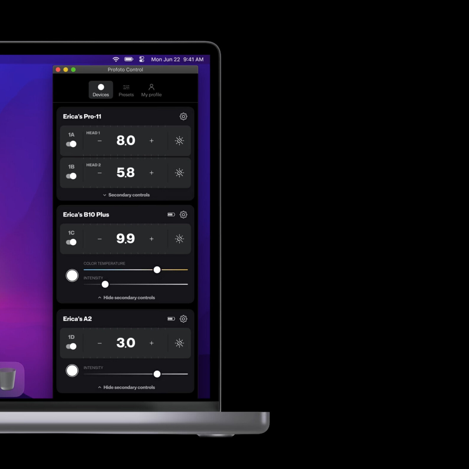 Profoto's UX design is carried through into their suite of desktop and mobile apps, built to ensure seamless control of lighting setups. Whether you're shooting solo on-location, tethered on a larger studio shoot or moving between sets on an e-Comm production, you can set up and manage lights individually or as groups from a beautifully engineered, simple interface on you mobile, tablet, desktop of laptop.
